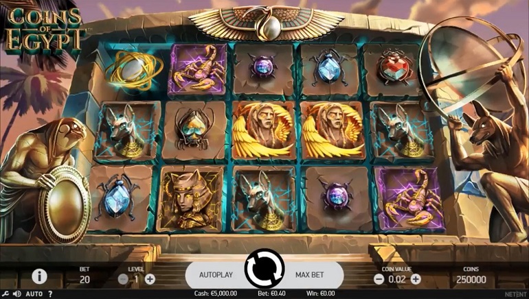 أطلق كازينوهات Net Entertainment لعبة Coins of Egypt المذهلة ذات الخمس بكرات في الثامن من أكتوبر لتمثل أحد أفضل وأروع العاب ماكينات سلوتس بعشرين خط، بعد فترة من الإطلاق الحصري في كازينو بيتسون Betsson Casino، حيث أثبت التصميم الرائع والمزايا المتعددة نجاحًا باهرًا عند عرضها أول مرة.
